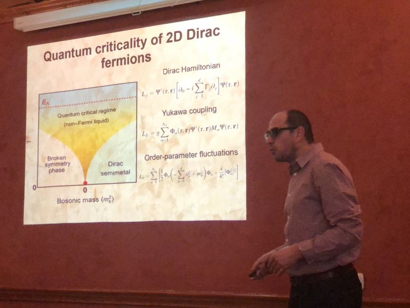In the second part of the talk, we will discuss the quantum transport close to a relativistic quantum critical point, separating two-dimensional massless Dirac fermions from a fully gapped insulator or superconductor. In particular, we will consider the scaling of optical conductivity in the (high-frequency) collisionless regime [2]. Close to such a critical point, gapless fermionic and bosonic excitations are strongly coupled, which inside the critical regime leads to a universal suppression of the interband optical conductivity as well as of the Drude peak. These results are obtained by performing the leading order expansions in the inverse of the fermion flavor number and in the distance from the upper-critical three spatial dimensions in the problem.