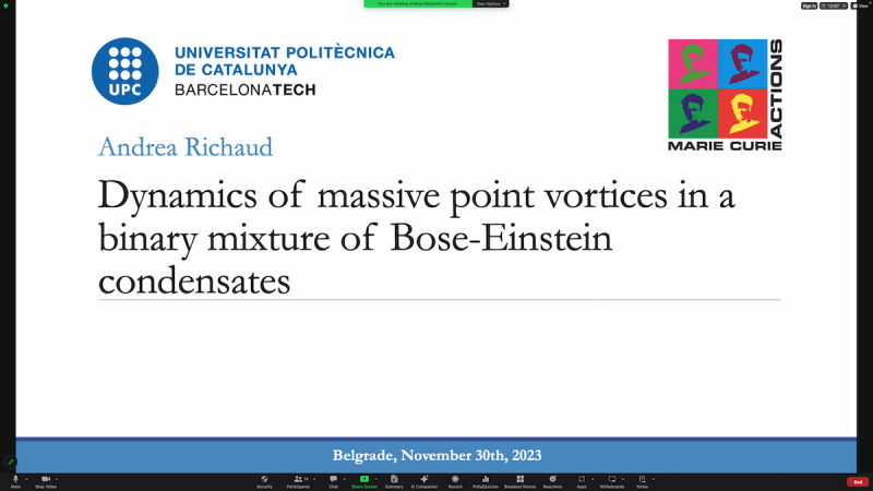 will be given by Dr. Andrea Richaud (Department of Physics, Polytechnic University of Catalunya, Barcelona, Spain). The abstract of the talk: