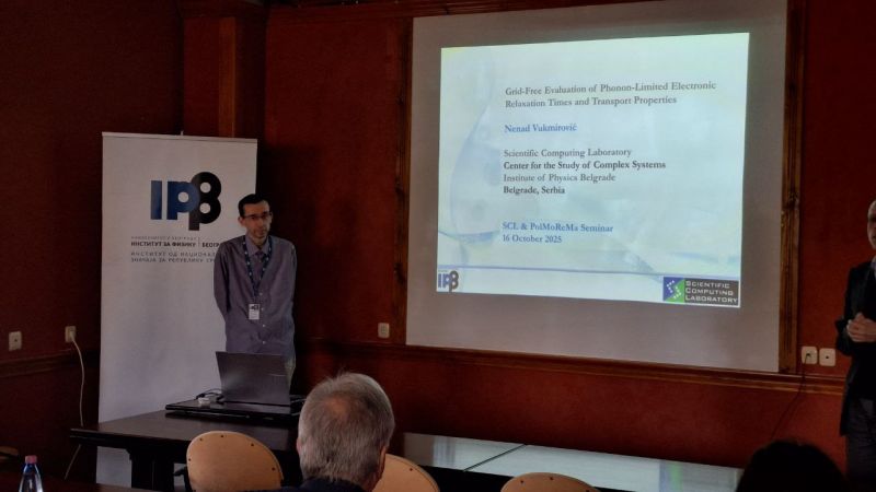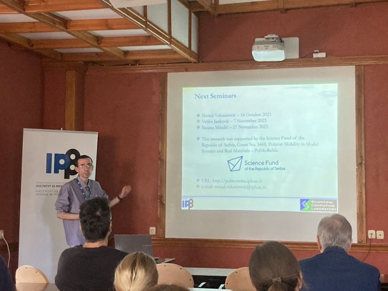 You are cordially invited to the seminar of the Scientific Computing Laboratory of the Center for the Study of Complex Systems and of the project Polaron Mobility in Model Systems and Real Materials (PolMoReMa). The seminar will be held on Thursday, 16 October 2025 at 14:00 in the "Dragan Popović" lecture hall of the Institute of Physics Belgrade. The talk entitled