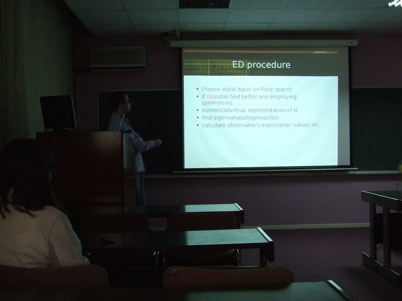 Zlatko Papic, SCL graduate student, gave two seminars presenting his research on the quantum Hall effect. The first lecture introduced the numerical techniques for exact diagonalization, while the other one focused on the use of conformal field theory as a tool for studying the physics of quantum Hall effect.